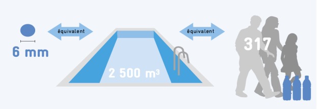 The daily losses of treated water are colossal. A 6 mm hole in a 5 bar pressure pipe generates water loss equivalent to the daily consumption of 317 inhabitants or an Olympic pool within 2 months.